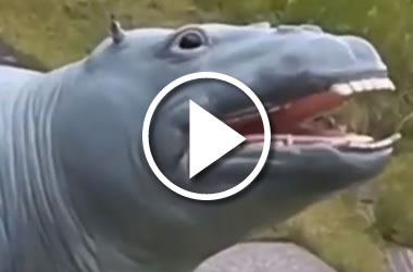 Telloで撮影。埼玉県小鹿野市にある珍獣パレオパラドキシアの模型を撮影しました。太古の昔には、こんな生き物が歩いていたんですね。